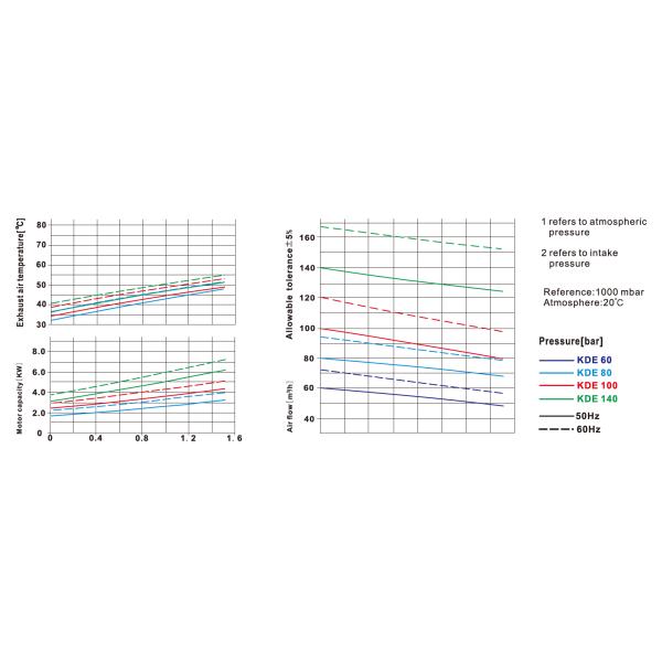 | KDE60 | 60 | 72 | 3 | 3.6 | 230/400V±10% | 1450 | 1740 | +1500 | 72 | 69 |