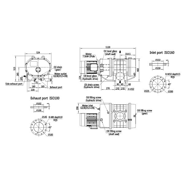 Hydraulic coupling Iron Cast Roots Vacuum Pump 2590 m3/h, BSJ600LC Images |